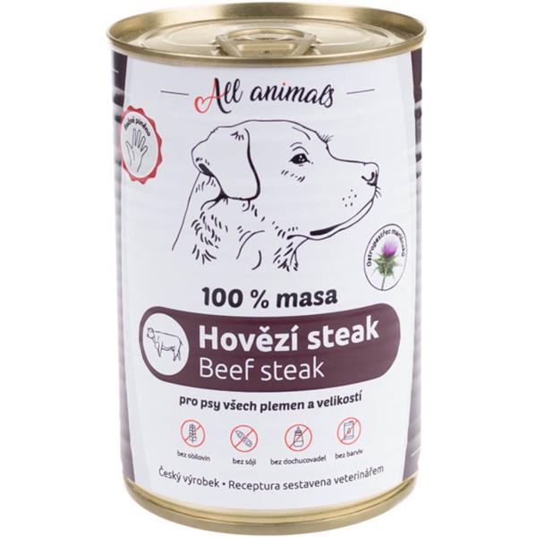 ALL ANIMALS konz. pro psy hovězí steak 400g