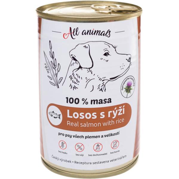 ALL ANIMALS konz. pro psy losos mletý s rýží 400g