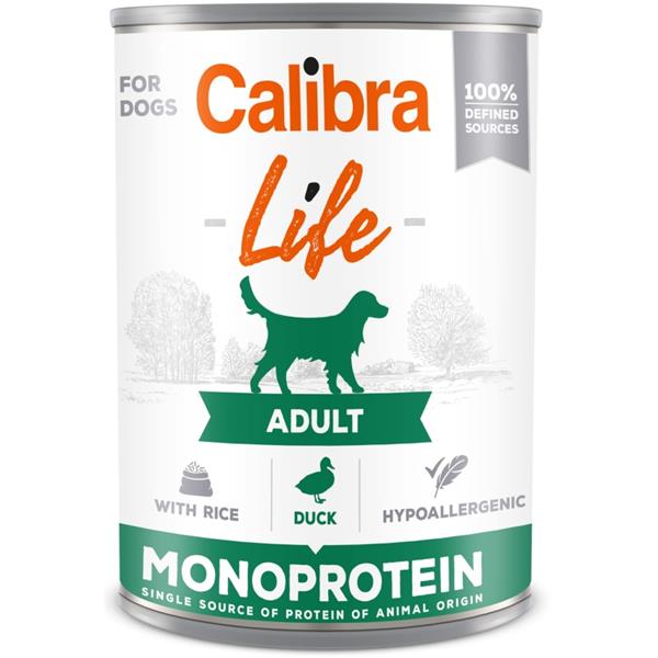 Calibra Dog Life Adult Duck with Rice - receptura s kachním a rýží je kompletním vlhkým krmivem.