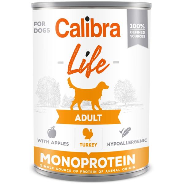 Calibra Dog Life Adult Turkey with Apple - hypoalergenní konzerva s krůtou a jablky.