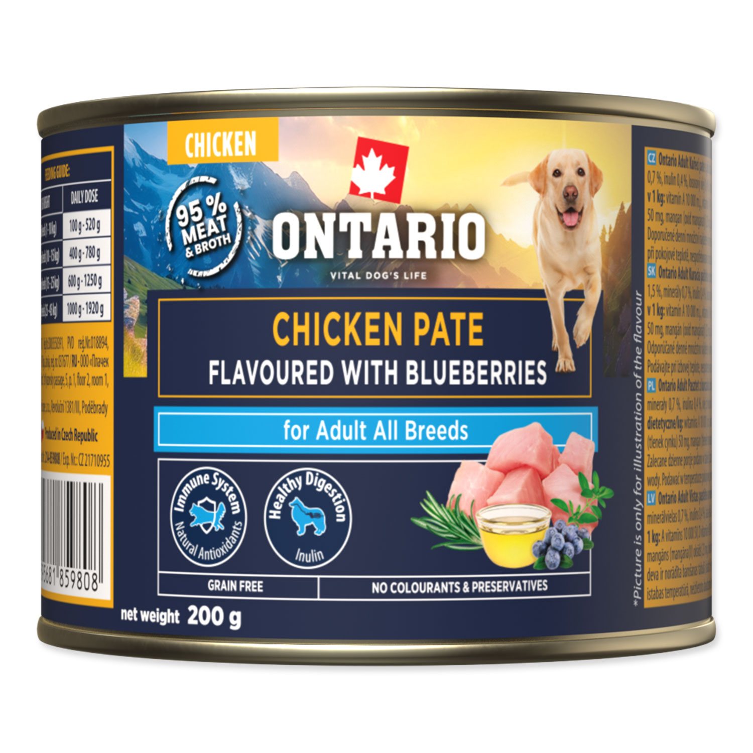 - Konzerva Ontario Adult kuřecí pate s příchutí borůvek 200g