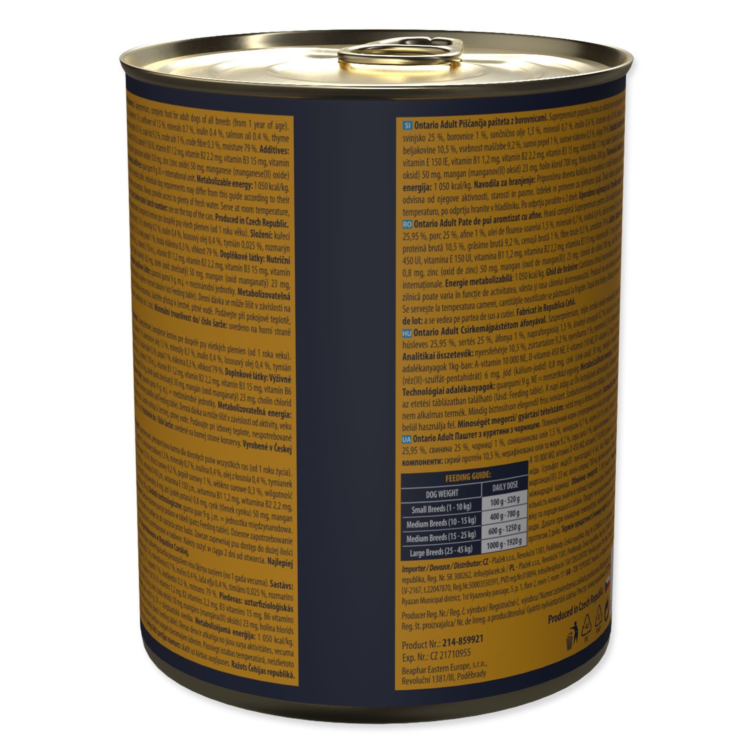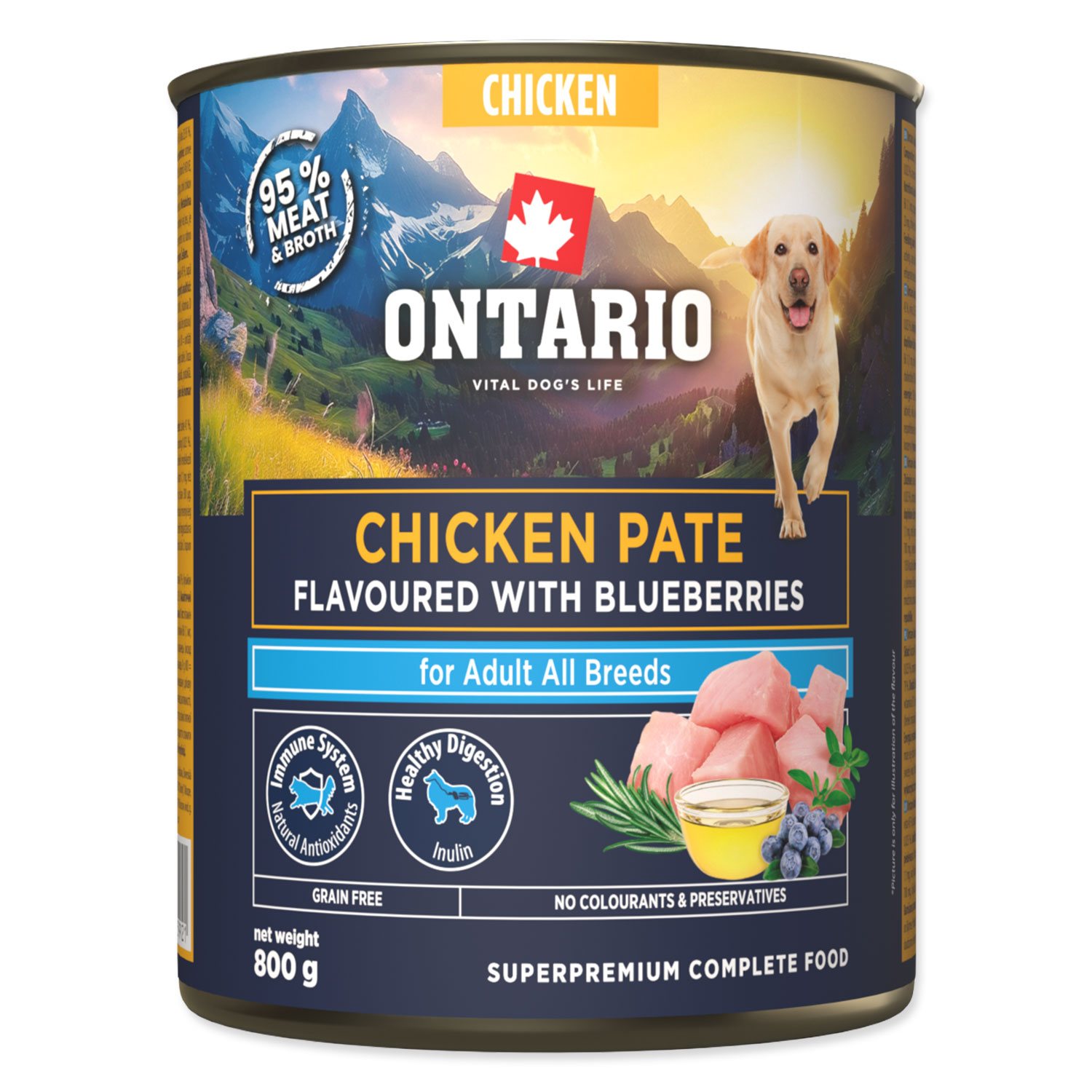 - Konzerva Ontario Adult kuřecí pate s příchutí borůvek 800g