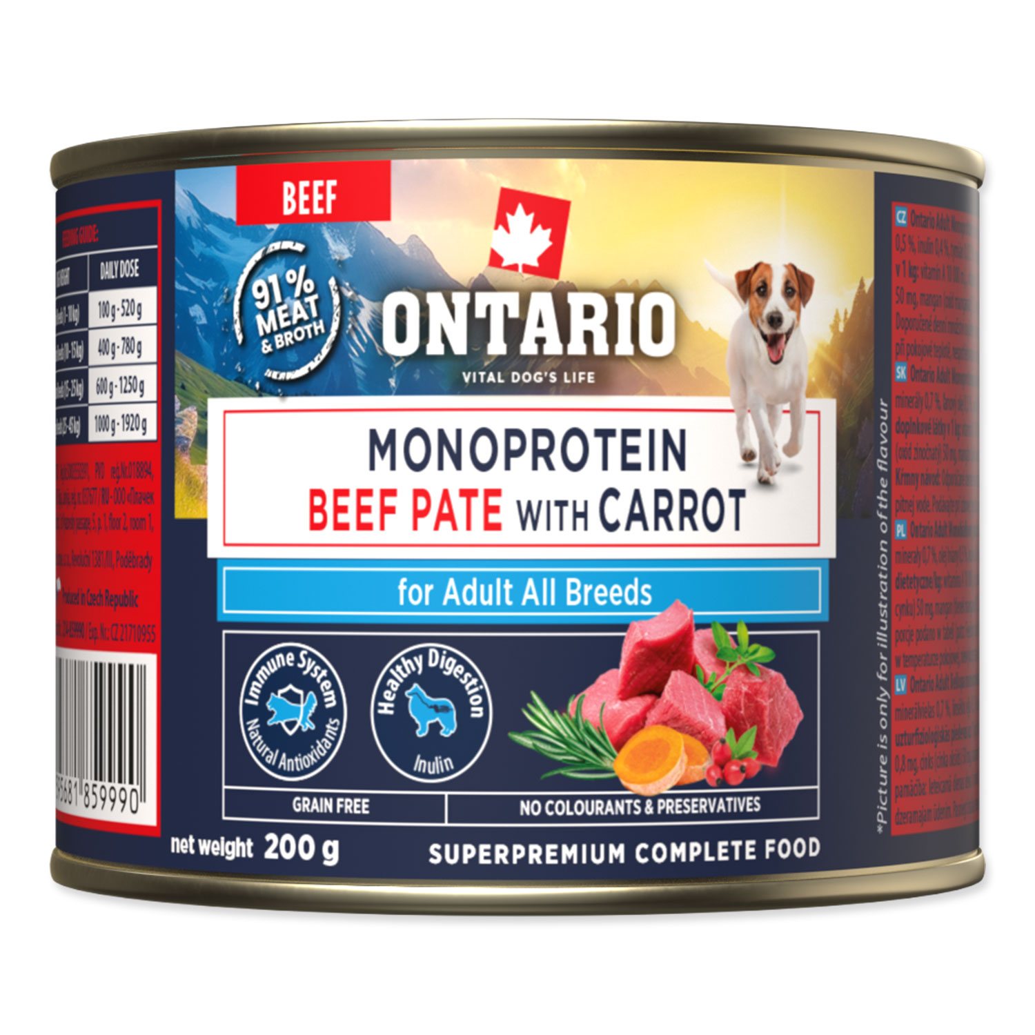 Podrobný popisKonzerva Ontario Adult monoprotein hovězí pate s mrkví