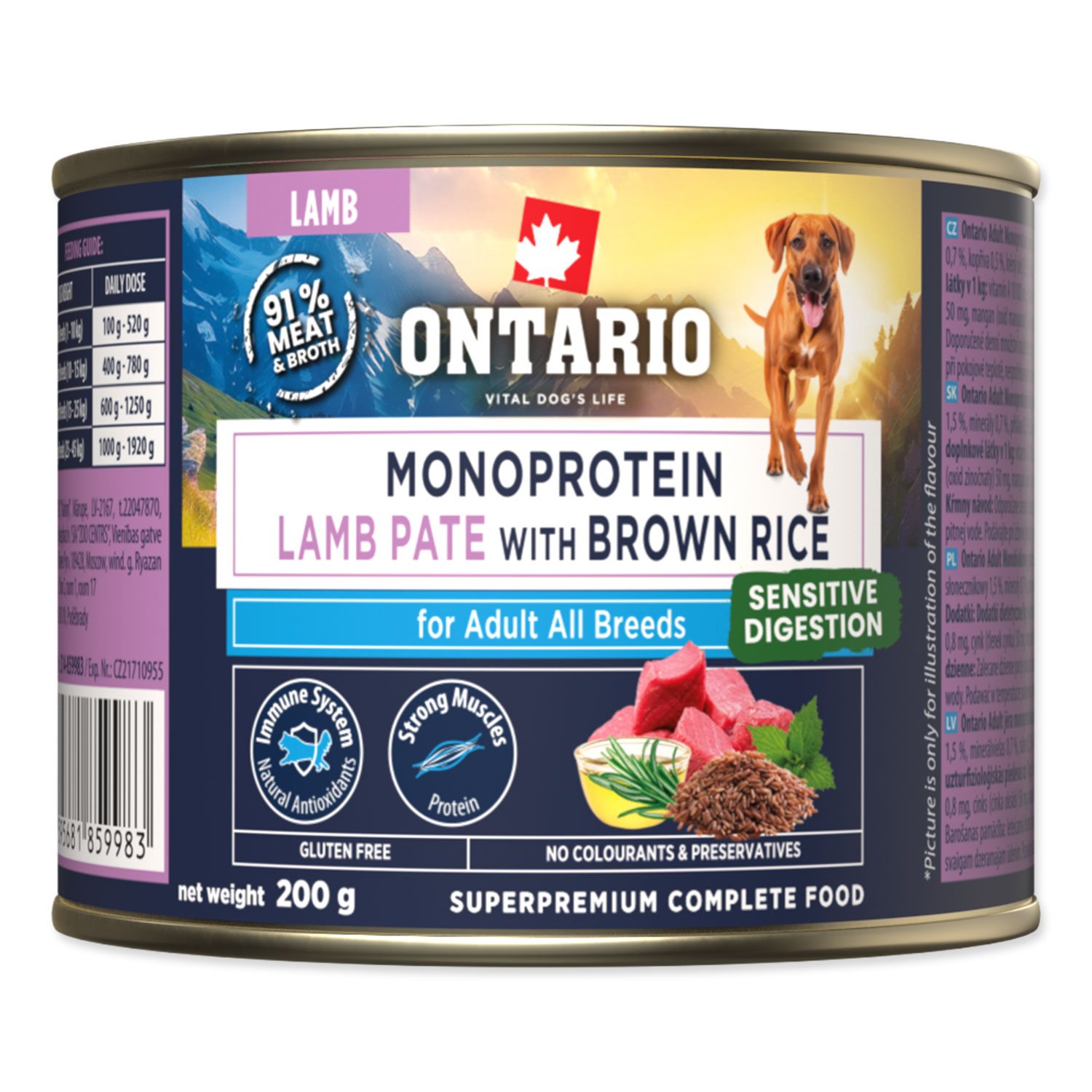 - Konzerva Ontario Adult monoprotein jehněčí pate s hnědou rýží 200g