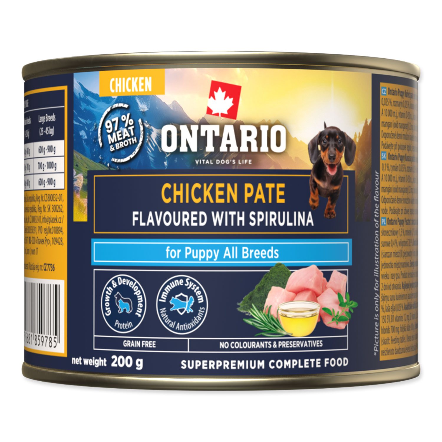 - Konzerva Ontario Puppy kuřecí pate s příchutí spiruliny 200g