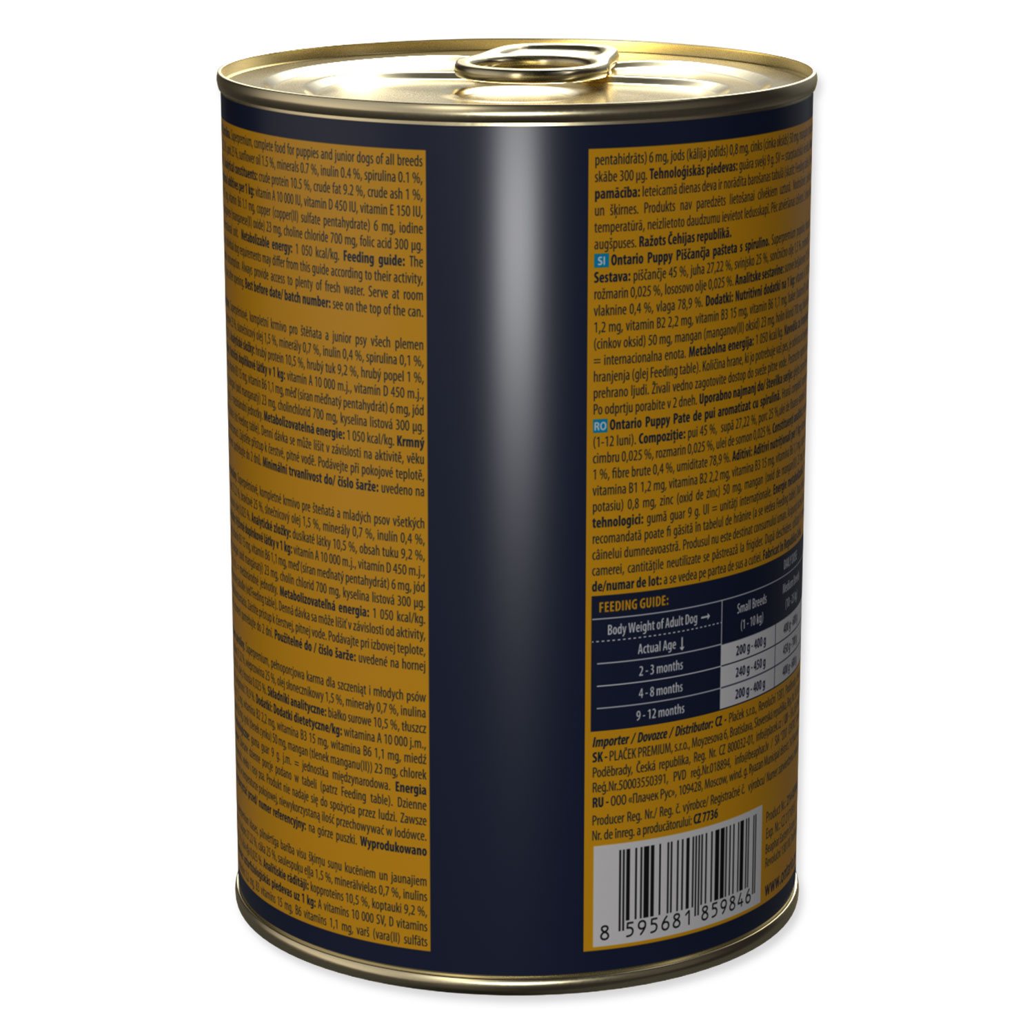 - Konzerva Ontario Puppy kuřecí pate s příchutí spiruliny 400g