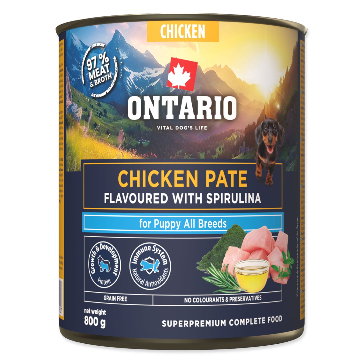 - Konzerva Ontario Puppy kuřecí pate s příchutí spiruliny 800g