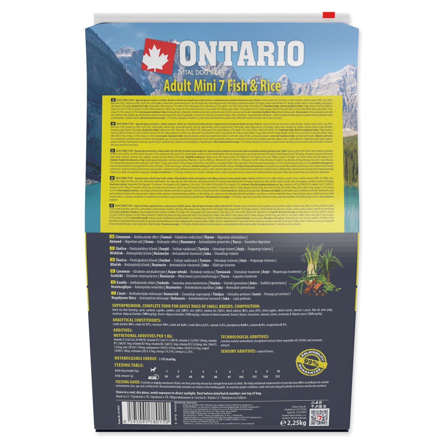 Krmivo Ontario Adult Mini Fish & Rice 2,25kg