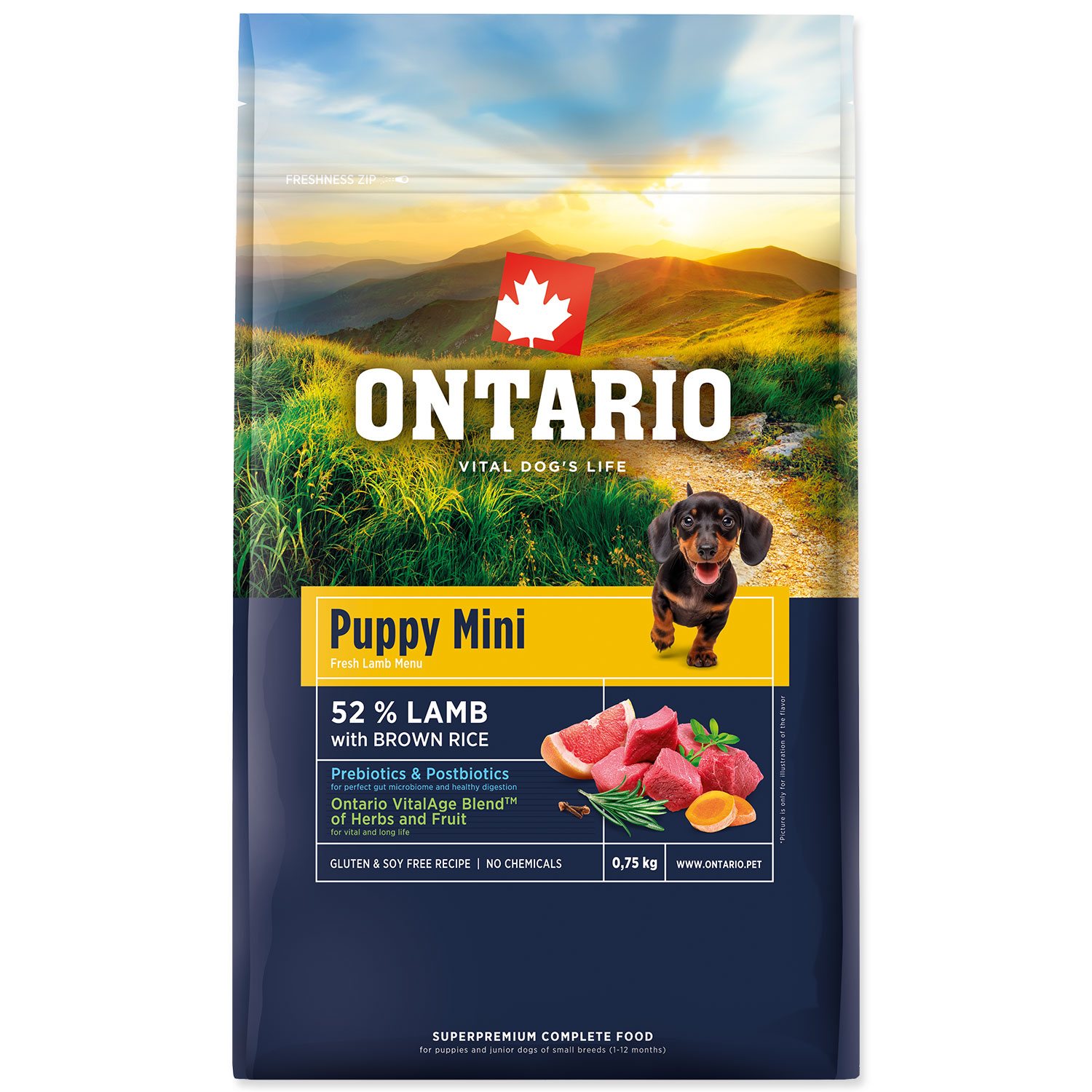 - Krmivo Ontario Puppy Mini Lamb & Brown Rice 0,75kg