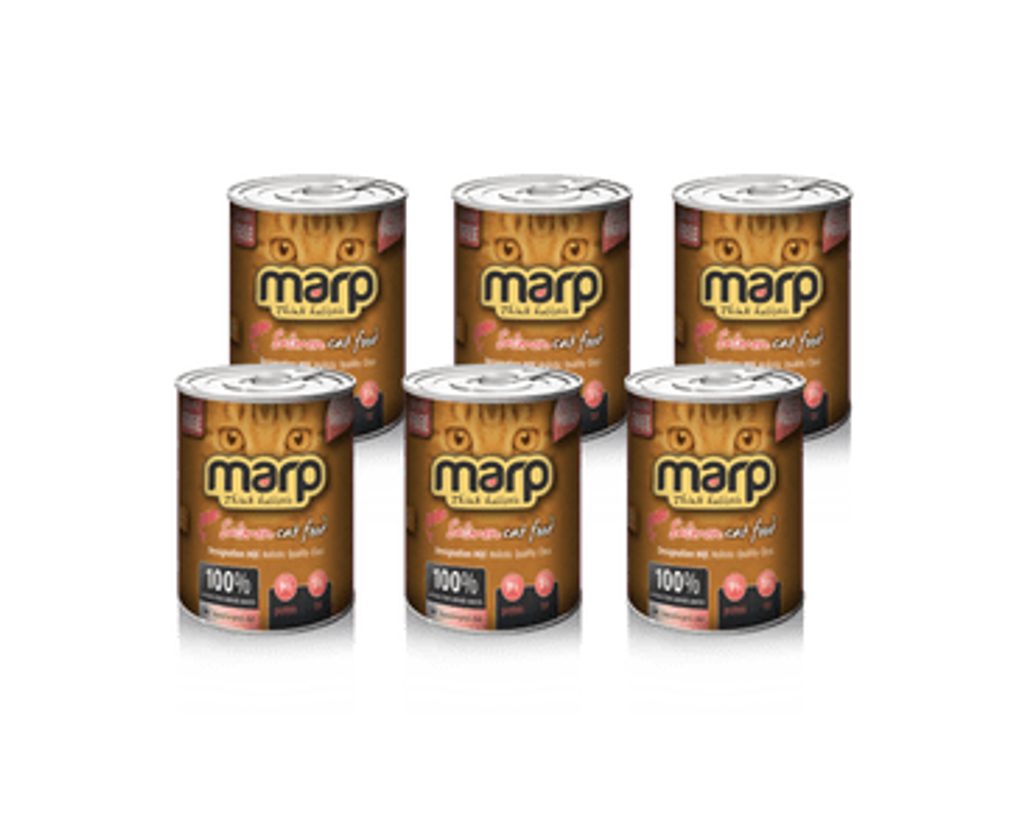 Víme, že kočka je masožravec a proto ji jako takovou ctíme. Konzervy Marp Pure obsahují 100% bílkovin ze živočišných zdrojů. Obsahují pouze maso, vnitřnosti, vývar a minerály. Nepoužíváme žádné umělé konzervanty, barviva, plnidla apod. a jsou vždy bez jakýchkoliv obilovin. Konzerva Marp s lososem bez obilovin je vhodná i pro kočky s citlivým zažíváním a dle našich zkušeností je velmi vhodná i pro kočky s potravními alergiemi.