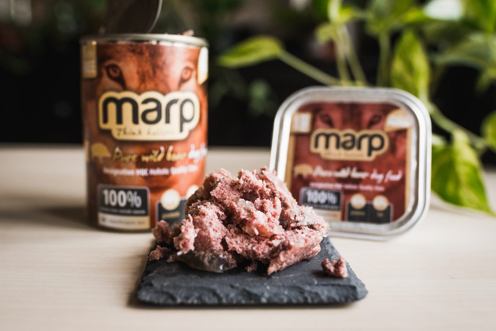 Konzervy Marp Pure obsahují 100% bílkovin ze živočišných zdrojů. Obsahují pouze maso, vnitřnosti, vývar a minerály. Nepoužíváme žádné umělé konzervanty, barviva, plnidla apod a jsou vždy bez jakýchkoliv obilovin. Konzerva Marp s divočákem bez obilovin je vhodná pro psy s citlivým zažíváním a dle našich zkušeností je velmi vhodná i pro psy s potravními alergiemi.